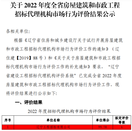 心博app官方版下载以99.58分的优异成绩在2022年省房屋建筑和市政工程招标代理机构市场行为评价活动中获得第一名。在激烈程度逐年递增的竞争中,心博app官方版下载所得分数持续保持上升态势,连续第四年问鼎此项殊荣。