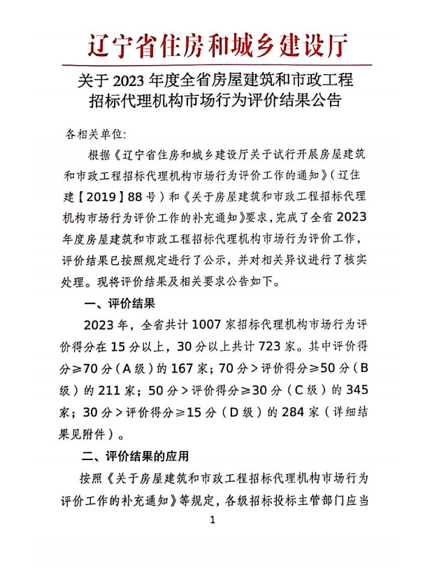 1月25日,在辽宁省住房和城乡建设厅发布的《2023年度全省房屋建筑和市政工程招标代理机构市场行为评价结果公告》中,心博app官方版下载以99.44分的优异成绩再次蝉联第一名,是自2019年起,连续第五年问鼎此项殊荣。
